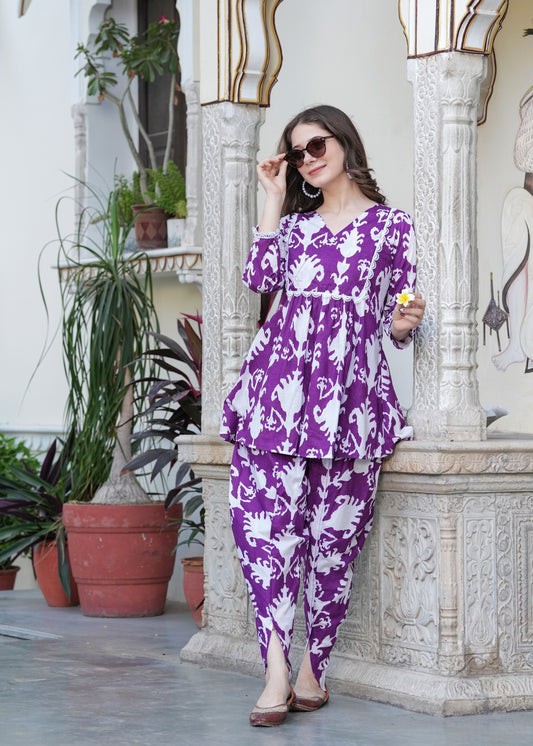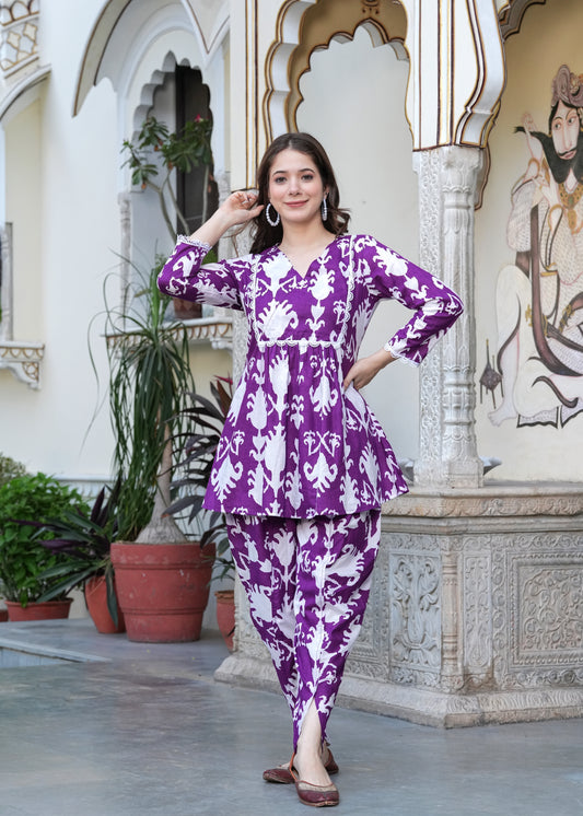 Ethnic Purple Ikat look Print Co-ord Set for Women || Purple