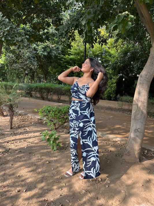 Ivory & Floral Printed Cotton Co-ord Set with Wide-Leg Pants