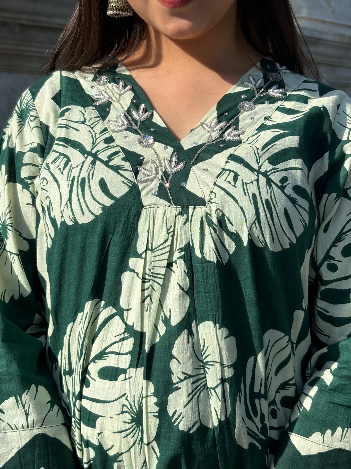 Refined Handwork on Neckline: Subtle, detailed, and uniquely artisanal — no two pieces are exactly alike.