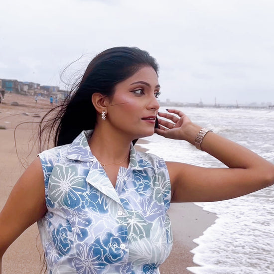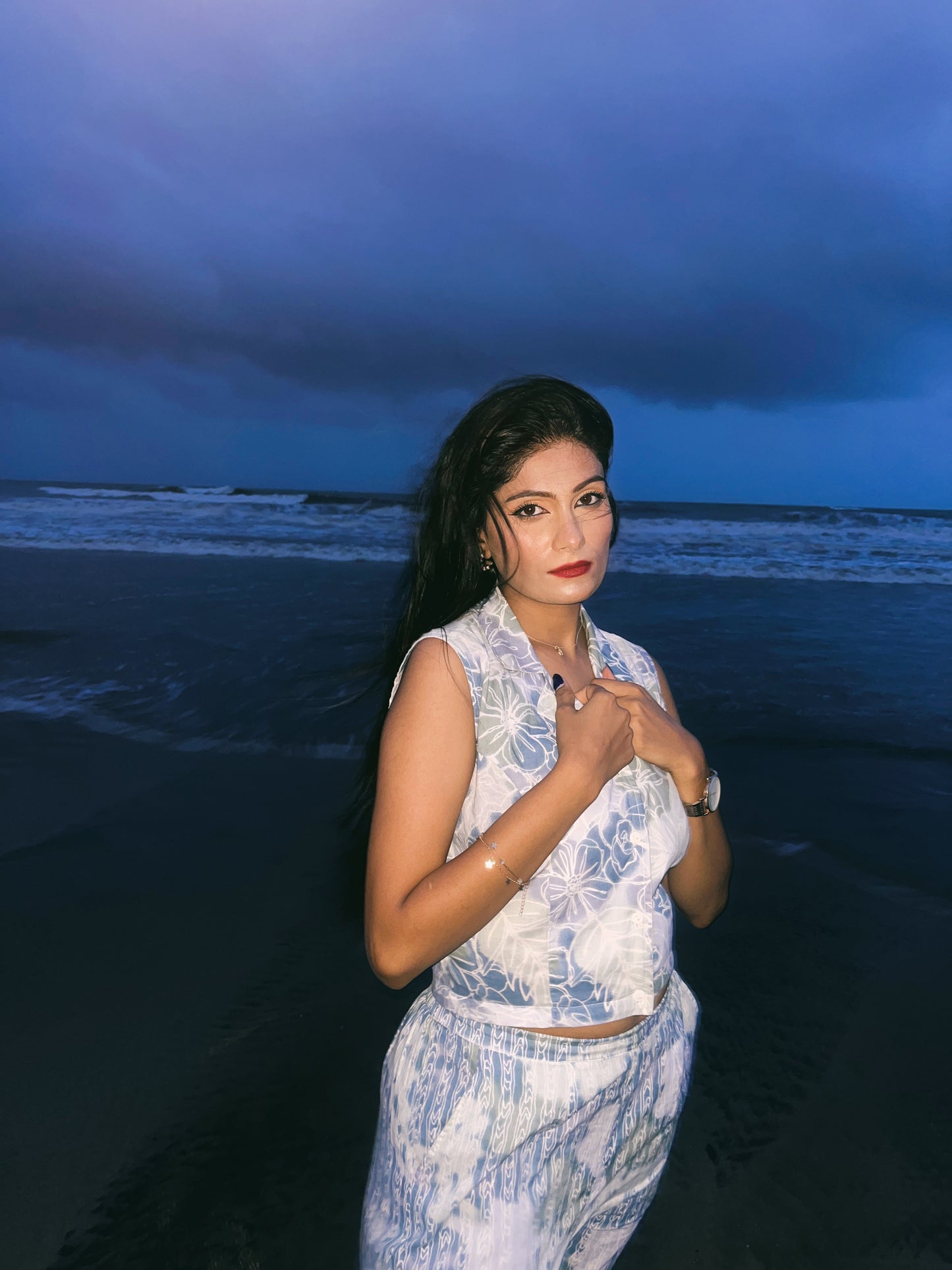 Capture the essence of the seaside with our Oceana Breeze Co-ord Set. This refreshing two-piece outfit features a sleeveless crop top and relaxed-fit pants, adorned with tropical blue and white floral and wave patterns that mirror the ocean’s calm and beauty. Made from soft, breathable fabric, this co-ord set is perfect for beach outings, summer strolls, or any occasion that calls for effortless style. Pair it with minimal accessories to let the set’s vibrant design shine. Dive into comfort and style with Oceana Breeze!