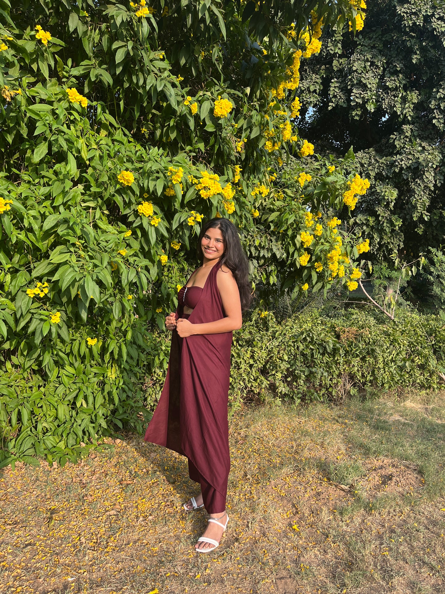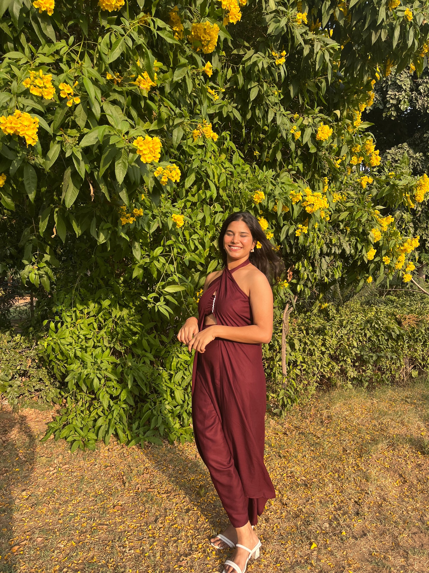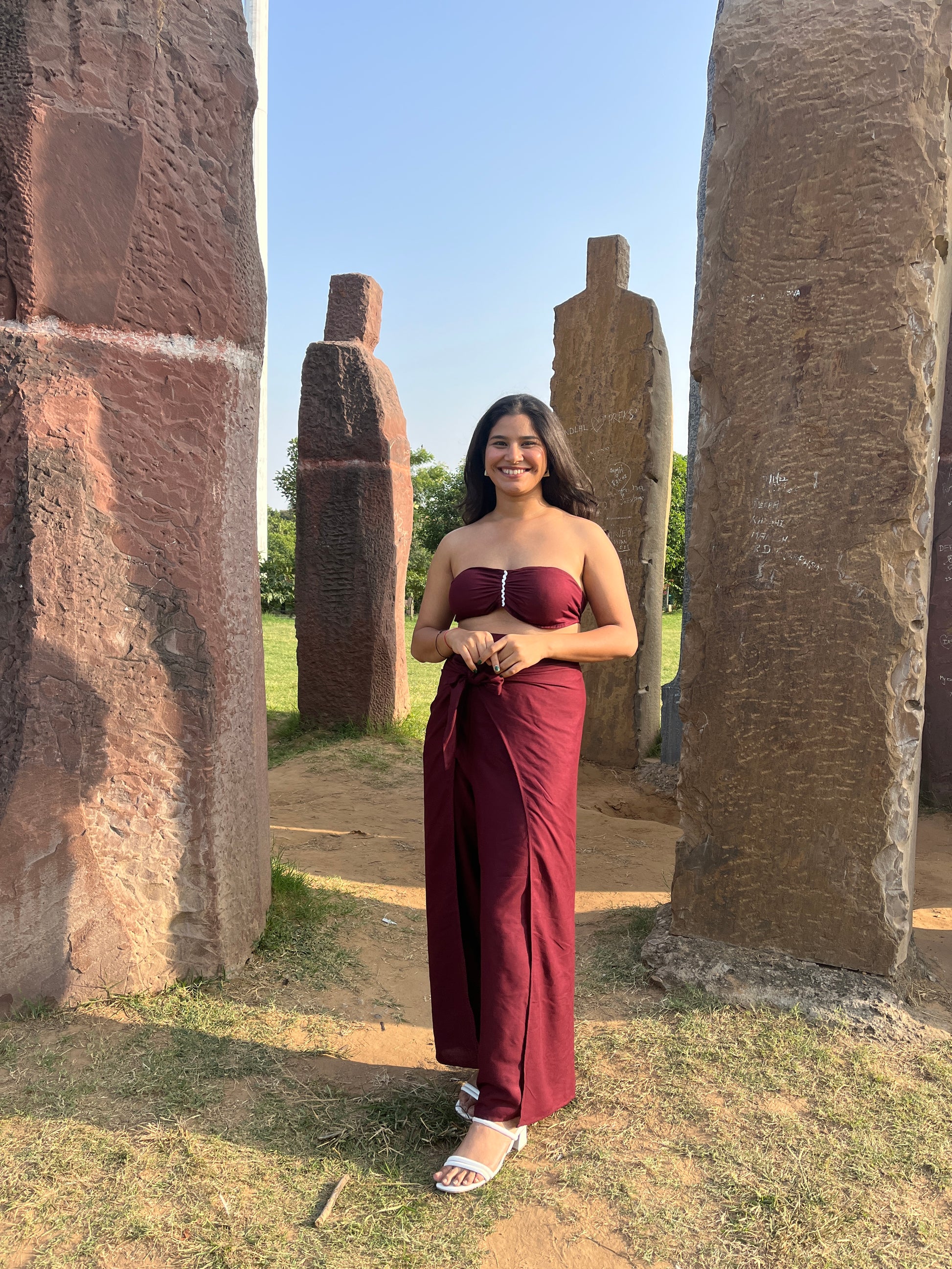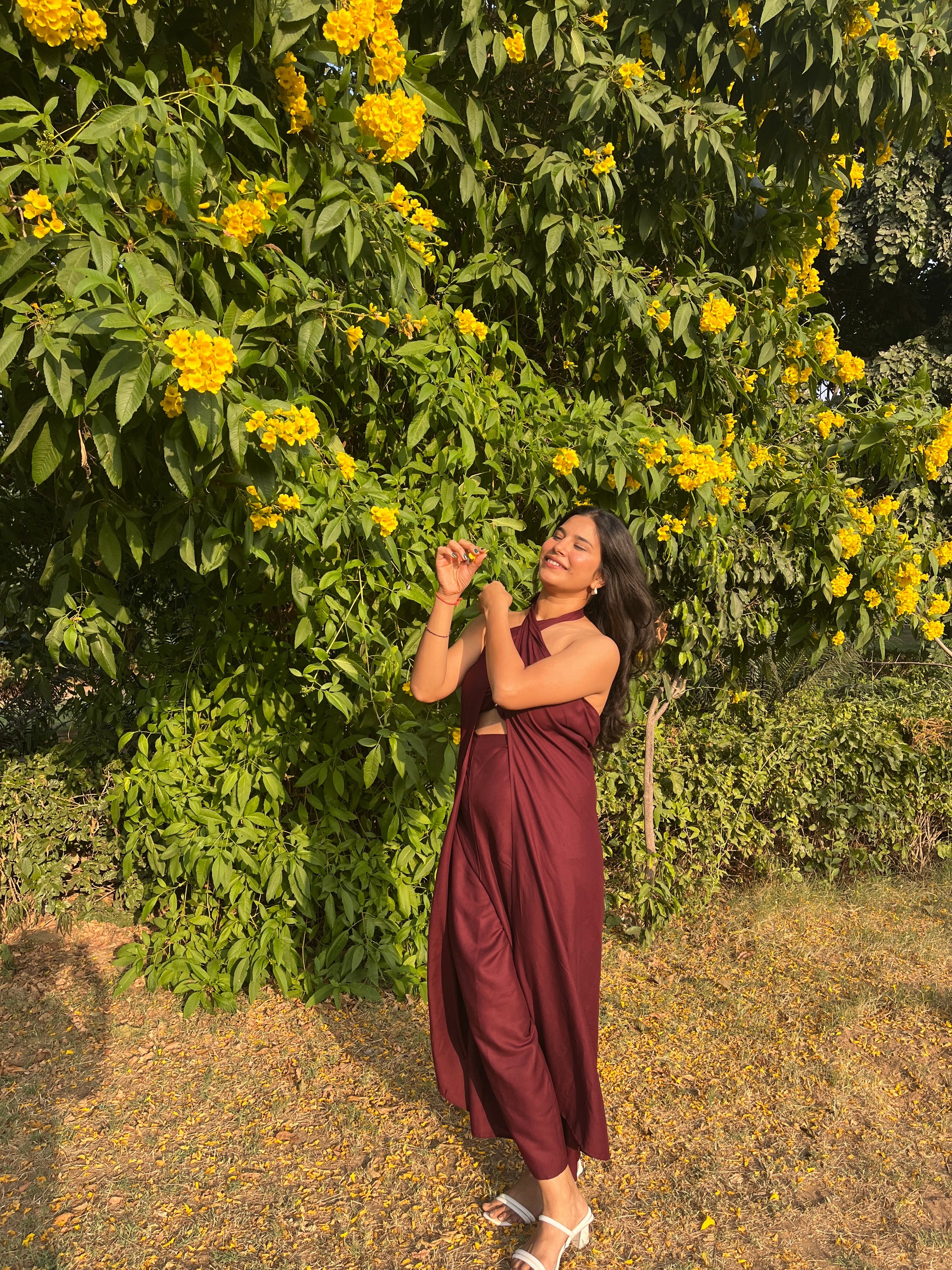 Introducing our versatile wine-colored co-ord set, crafted from soft and breathable solid rayon fabric. The top features a stylish bralette design that offers a chic and flattering fit, while the matching bottom can be styled in multiple ways to suit your mood and occasion. Whether you prefer a laid-back look or a more elevated style, this co-ord set is perfect for creating various outfits, making it a must-have addition to your wardrobe. Comfortable, elegant, and endlessly adaptable, this set effortlessly transitions from casual to evening wear with ease.