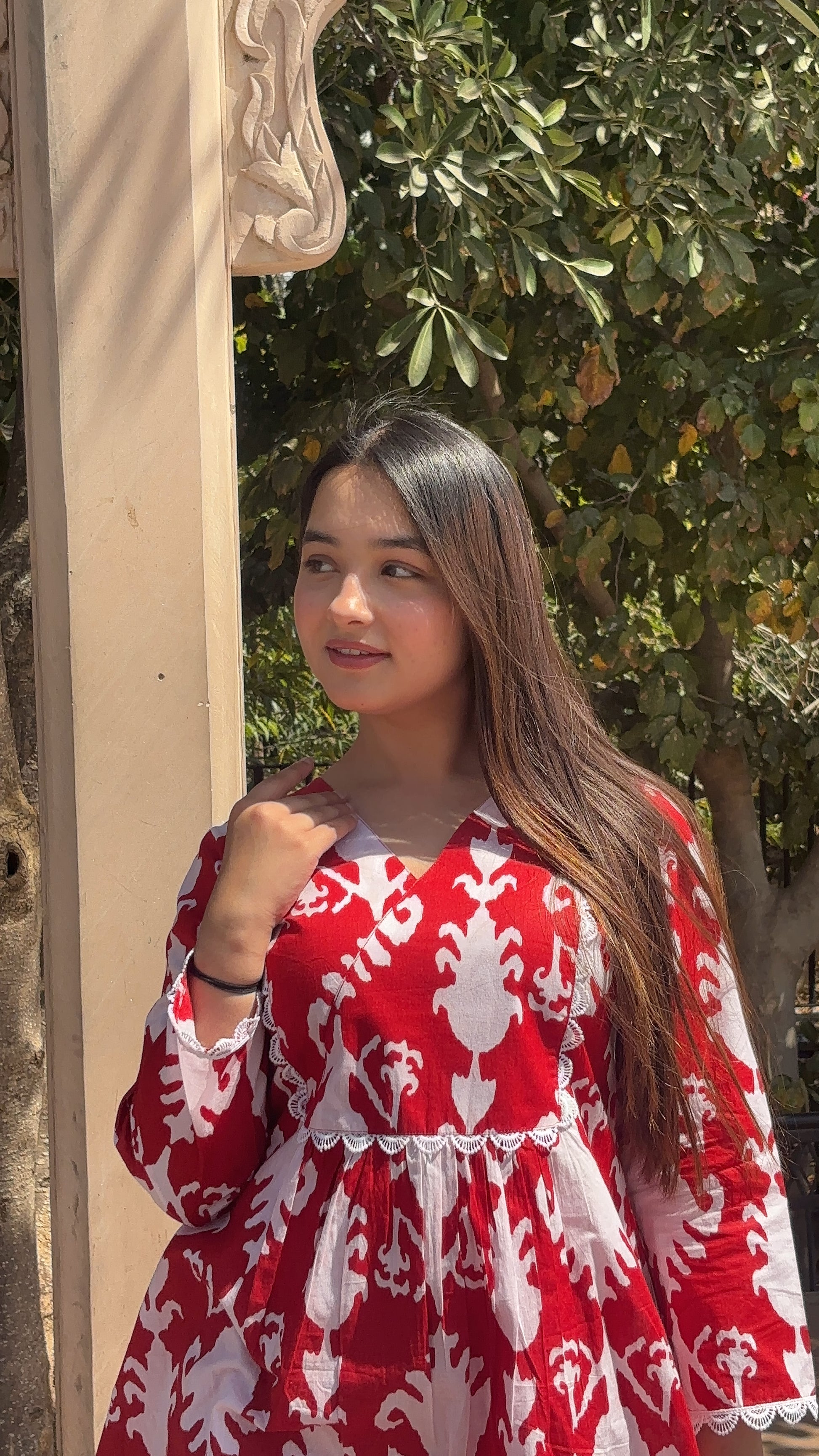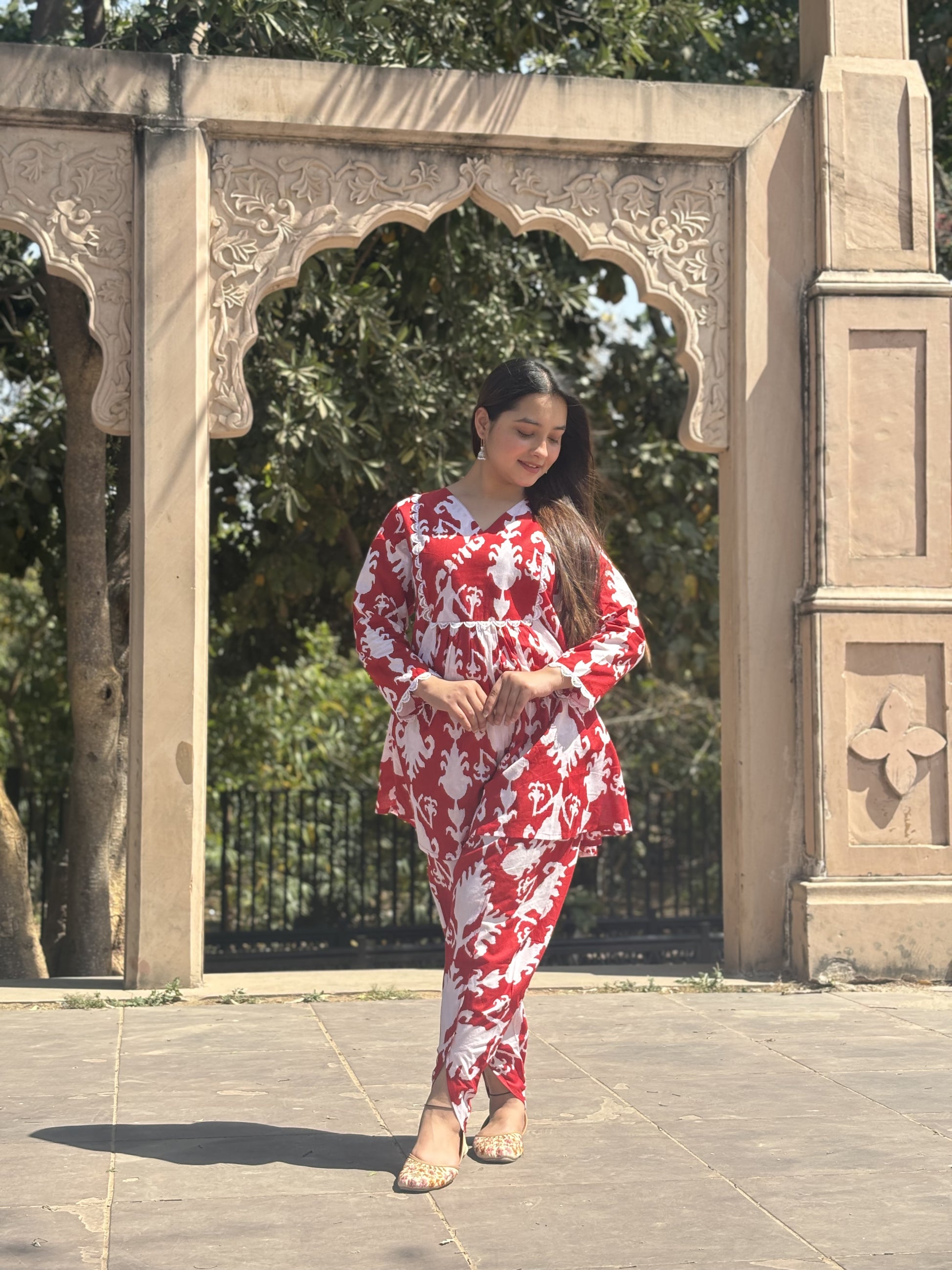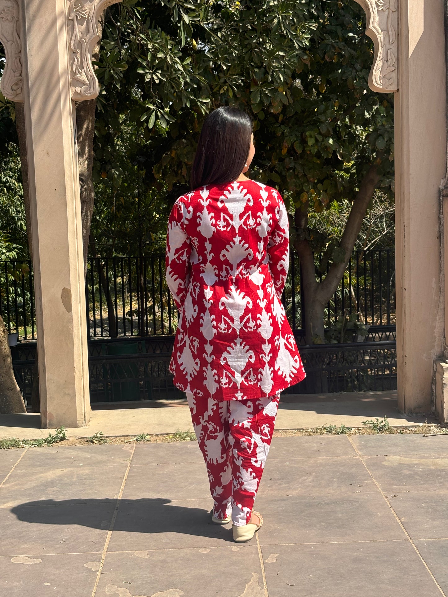 Crafted in airy cotton cambric, this pastel beauty blends everyday comfort with subtle elegance. Whether you're heading to work, stepping out for brunch, or just feeling cute at home – this kurta set soft lace detailing and flowy fit make sure you look put together without trying too hard.
