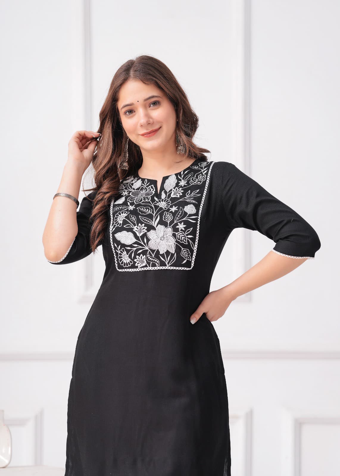 Design: Solid embroidery on the yoke adds a touch of sophistication.